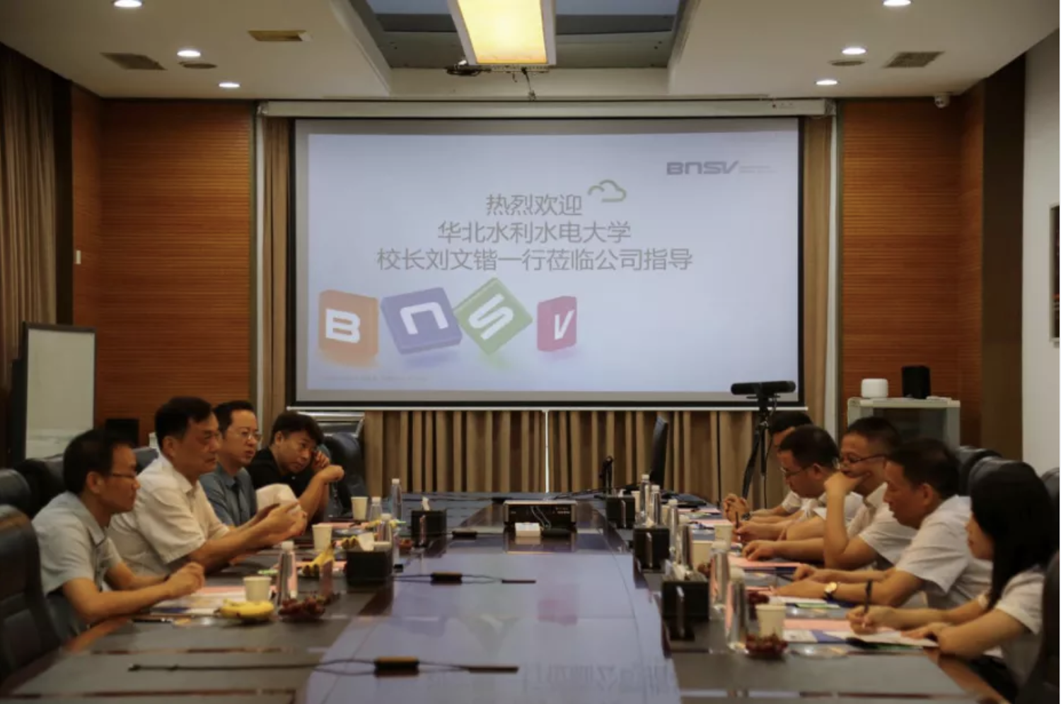 華北水利水電大學(xué)校長劉文鍇、辦公室主任尹彥禮、科技處處長上官林建、校友會劉悅,博納斯威董事長王東輝、總經(jīng)理王榮輝、副總經(jīng)理王天彪、總工程師廖志芳等出席了揭牌儀式及座談交流。