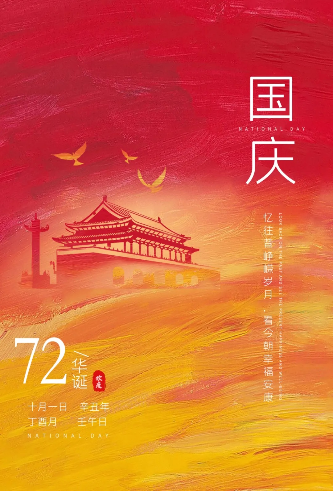 在這美好季節(jié),祖國(guó)的每一寸土地都活躍著甜蜜和興奮,洋溢著一片生機(jī),金秋十月,有著唱不完的頌歌,一頁(yè)頁(yè)日歷,記載著新中國(guó)累累碩果;有著道不盡的祝賀,一步步征程,閃爍著華夏兒女的汗水心血,在偉大祖國(guó)即將迎來72周年華誕之際,博納斯威全體員工共同祝愿我們偉大的祖國(guó)繁榮昌盛,人民幸福!