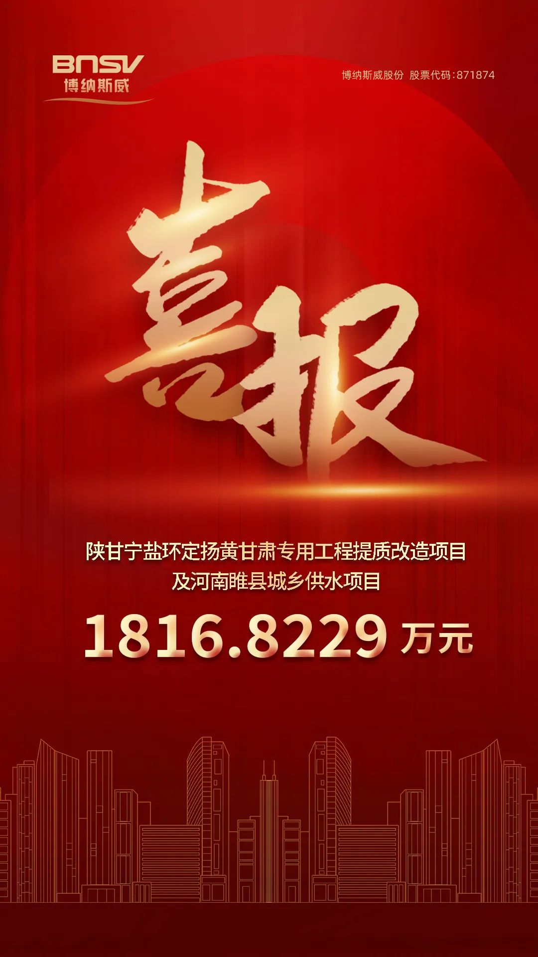 喜報(bào)!博納斯威中標(biāo)陜甘寧鹽環(huán)定揚(yáng)黃甘肅專用工程提質(zhì)改造項(xiàng)目及河南睢縣城鄉(xiāng)供水項(xiàng)目1816.8229萬(wàn)元