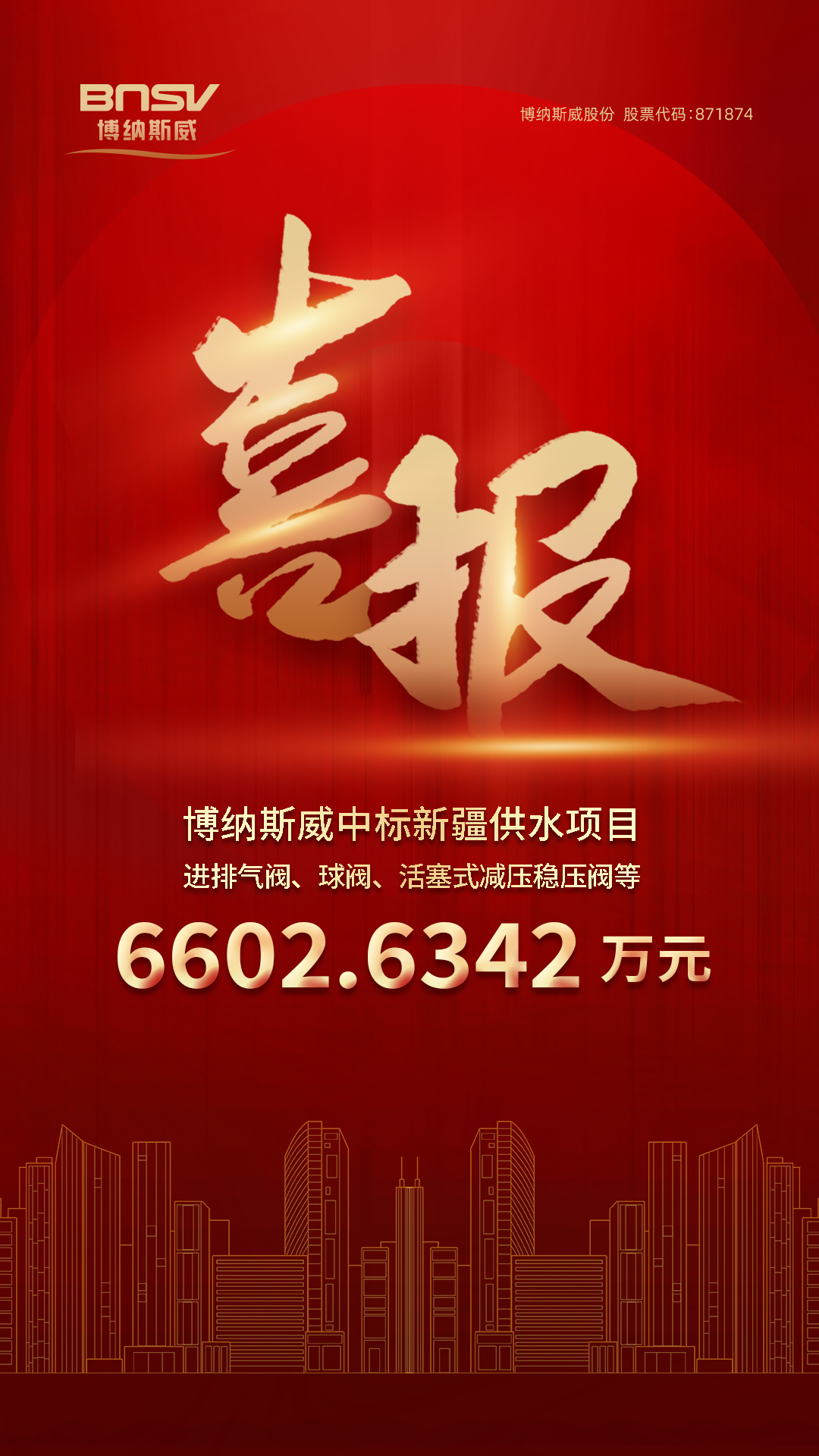 喜報(bào)!博納斯威中標(biāo)新疆4個(gè)供水項(xiàng)目6602.6342萬元