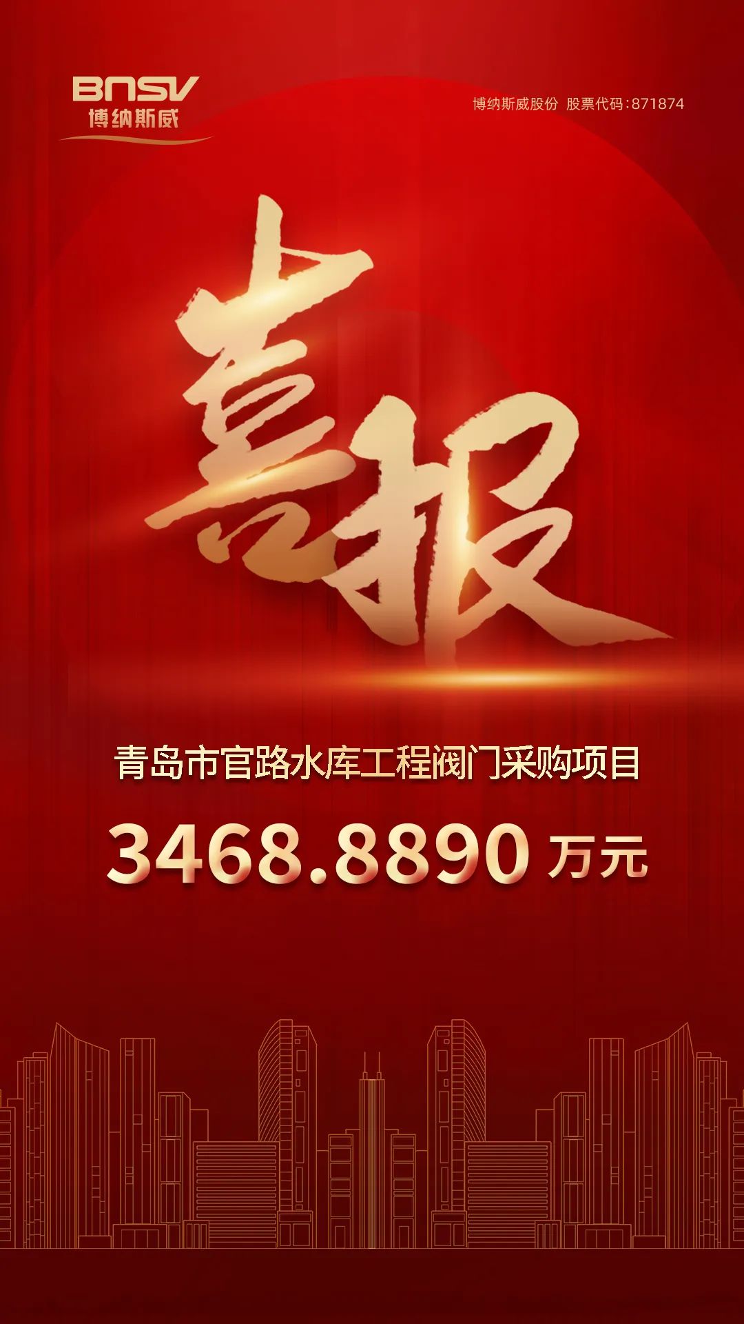 喜報!博納斯威中標(biāo)青島市官路水庫工程閥門采購項(xiàng)目3468.8890萬元