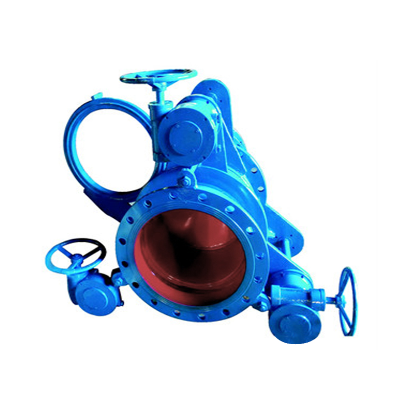 F343CX蝸輪盲板閥又稱(chēng)蝸輪扇形眼鏡閥,翻板閥,扇形閥,由左閥體、中閥體、右閥體、扇形盲板、絲桿螺母、不銹鋼補(bǔ)償器、兩個(gè)蝸輪傳動(dòng)機(jī)構(gòu)等組成。它是通過(guò)三根絲桿連成一體,并把三個(gè)閥體分別固定在底座上,構(gòu)成一個(gè)剛性結(jié)構(gòu)體。中閥體與右閥體用不銹鋼膨脹管連接,左、中閥體分別用三根兩端帶左右梯形螺紋的絲桿連接,將三根絲桿同時(shí)作正向(或反向)旋轉(zhuǎn),則左、中兩閥體得到壓緊(或分離)。三根絲桿中上面一根絲杠中間裝有盲板,盲板繞該軸心旋轉(zhuǎn)。下面兩根絲桿在同樣的部位上安裝有盲板的定位塊,盲板旋轉(zhuǎn)時(shí)可以防止盲板漂移,避免密封圈擦傷,其中一根絲桿上裝有蝸輪傳動(dòng)機(jī)構(gòu),實(shí)現(xiàn)松開(kāi)夾緊閥體的目的。